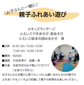 キッズマッサージでお子さんとのふれあいの時間を楽しんだり・・・。
